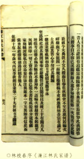 首尊祖,次修谱,次睦族,继之广睦、奉 终,申以务学、谨行,归于修德、体仁。今日之 事 ,比物此志 [1]也。朱文公 [2]之训曰: “为 人孙者,当思祖德之勤劳;为人子者,宜念父功 之刻苦。”李文贞 [3]之言日: “心父母之心, 则无不和之兄弟;心祖宗之心,则无不睦之族 人。”於 戏,之二说者尽之矣。谨以是为吾宗 劝。 (《濂江林氏家谱》)