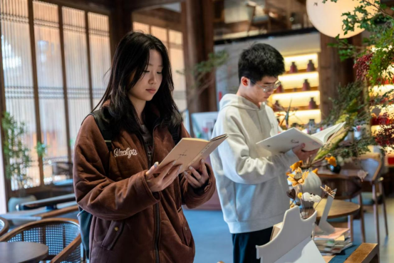 分享结束后,不少读者在“阅见厝里美学”主题书展前驻足,集中亮相的《福建古厝》《福州古厝》《闽南传统建筑》等精品著作,从宏观的聚落布局到细微的装饰纹样,全方位解码古厝营造智慧与文化积淀,让意犹未尽的听讲读者能够按图索骥,阅尽千年建筑美学。知识浸润之余,读者们还化身“临时工匠”,通过搭建古厝模型,感受在梁、柱、枋、椽的精妙咬合之间蕴含的古厝结构逻辑与巧思,让书本中那段深藏于历史的古厝搭建匠心与文化魅力,在亲手搭建的模型间重现。