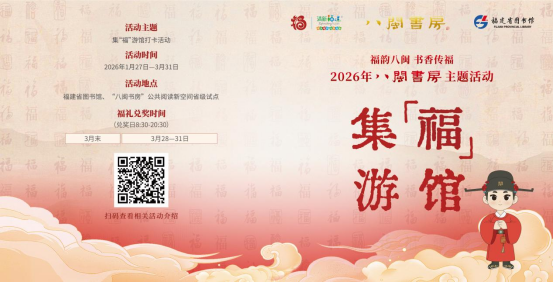 由福建省文化和旅游厅主办的“八闽书房”主题活动〔寻福卷〕集“福”游馆打卡活动,自2026年1月27日启动以来,持续吸引广大市民读者踊跃参与。截至2月28日,前两轮活动已吸引逾1.6万人次关注,累计参与1500人次,让读者在丰富的阅读场景中沉浸式感受八闽文化的气韵与风采。