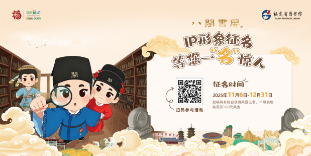 为进一步扩大“八闽书房”品牌影响力,使“闽人闽书闽事闽智慧”以生动姿态走进百姓生活,“八闽书房”IP形象应运而生。现面向社会开展“八闽书房”IP形象征名活动,欢迎大家广泛参与。