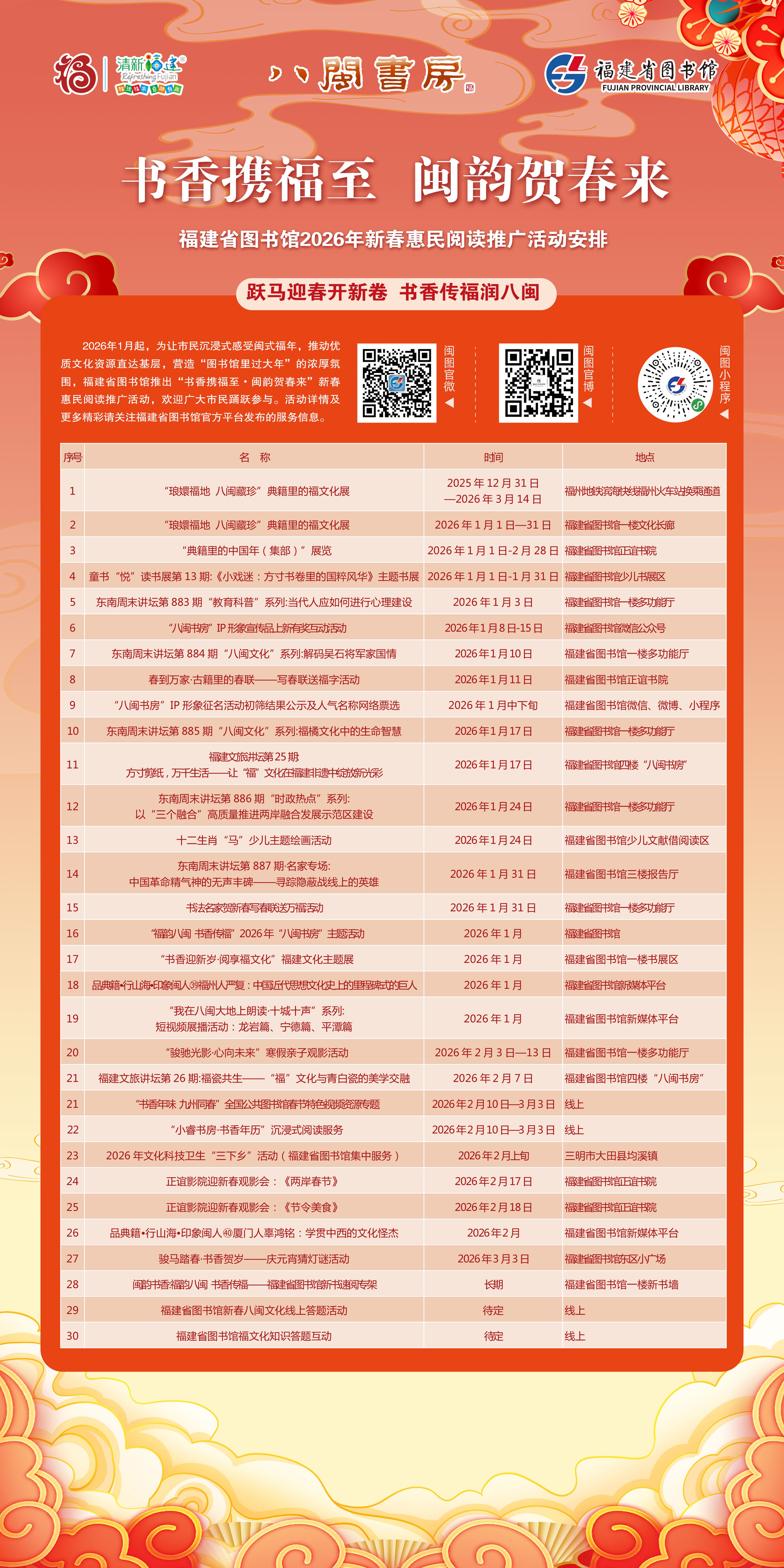 福建省图书馆2026年新春惠民阅读推广活动安排